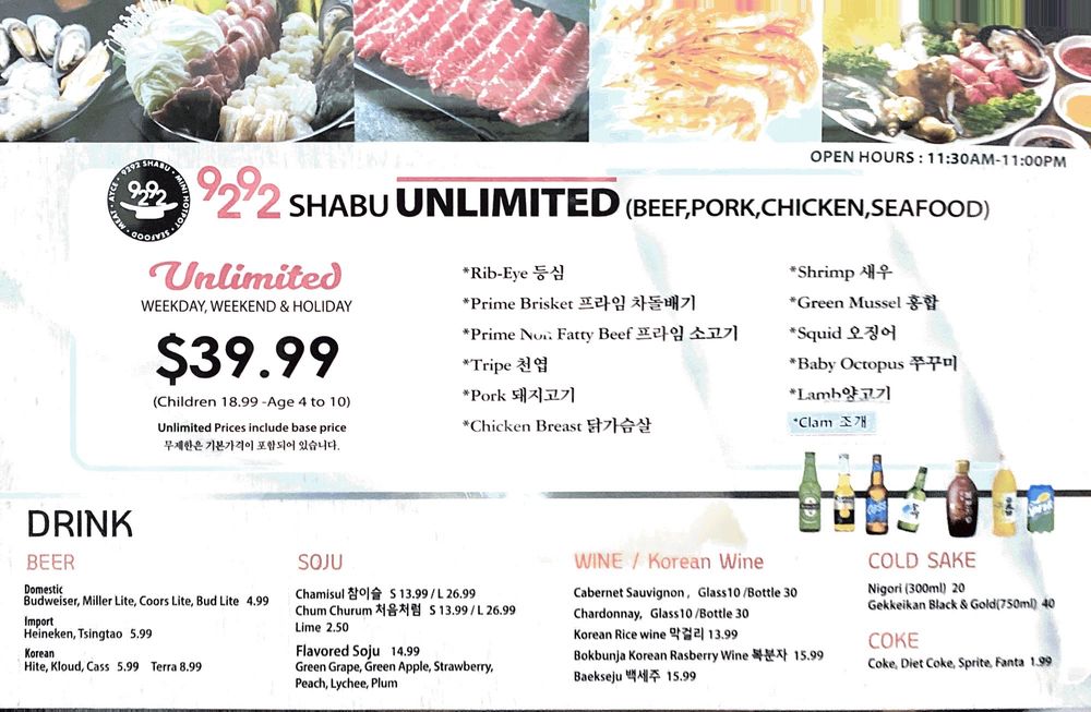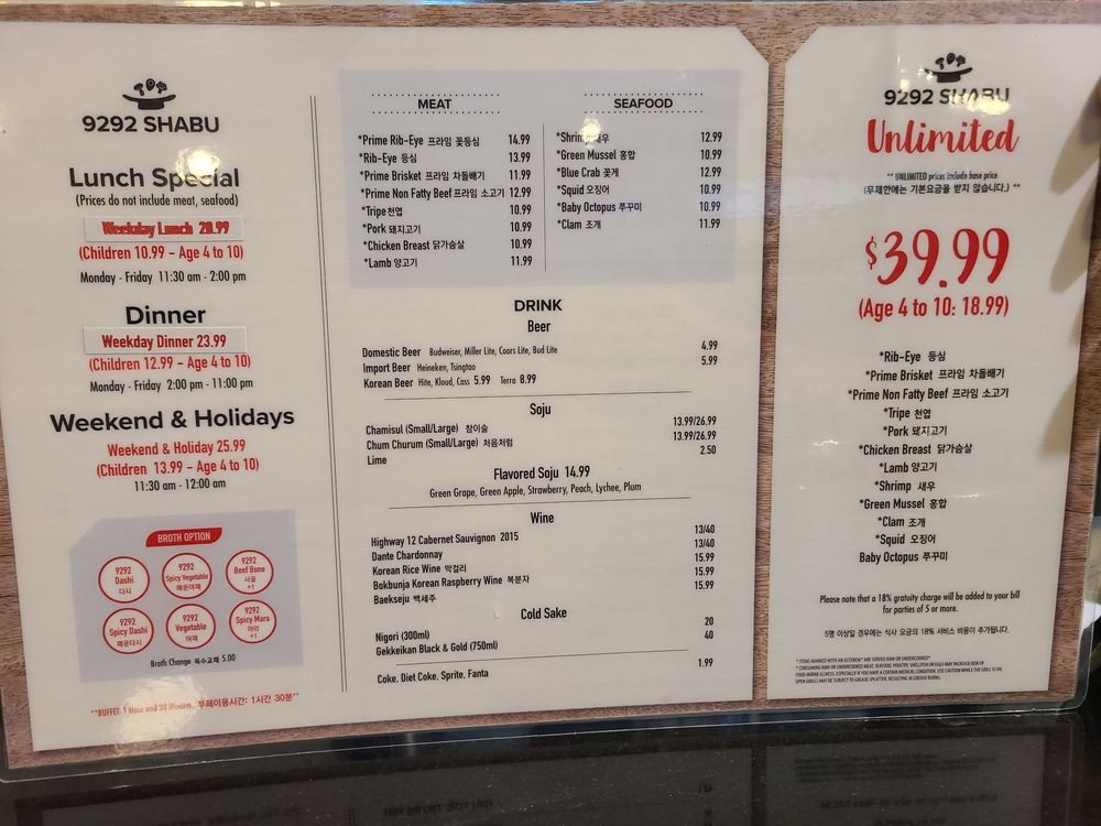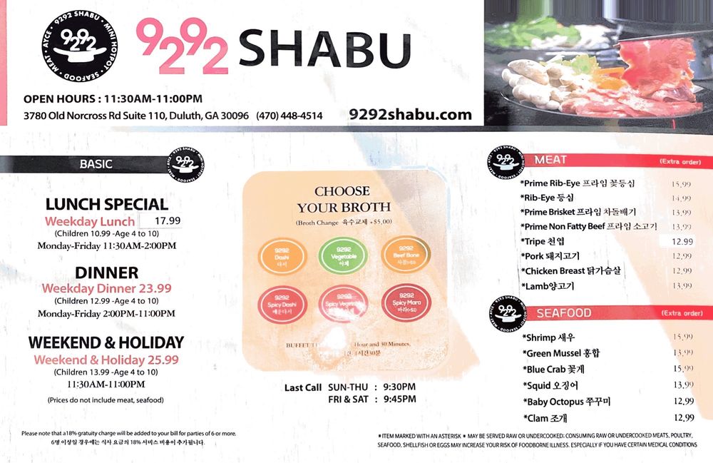 Welcome to 9292 Shabu, a dining gem nestled in Duluth, Georgia, at 3780 Old Norcross Rd Ste 110. This delightful eatery specializes in Korean-style shabu shabu, a hot pot experience that invites diners to immerse themselves in a vibrant culinary journey.
